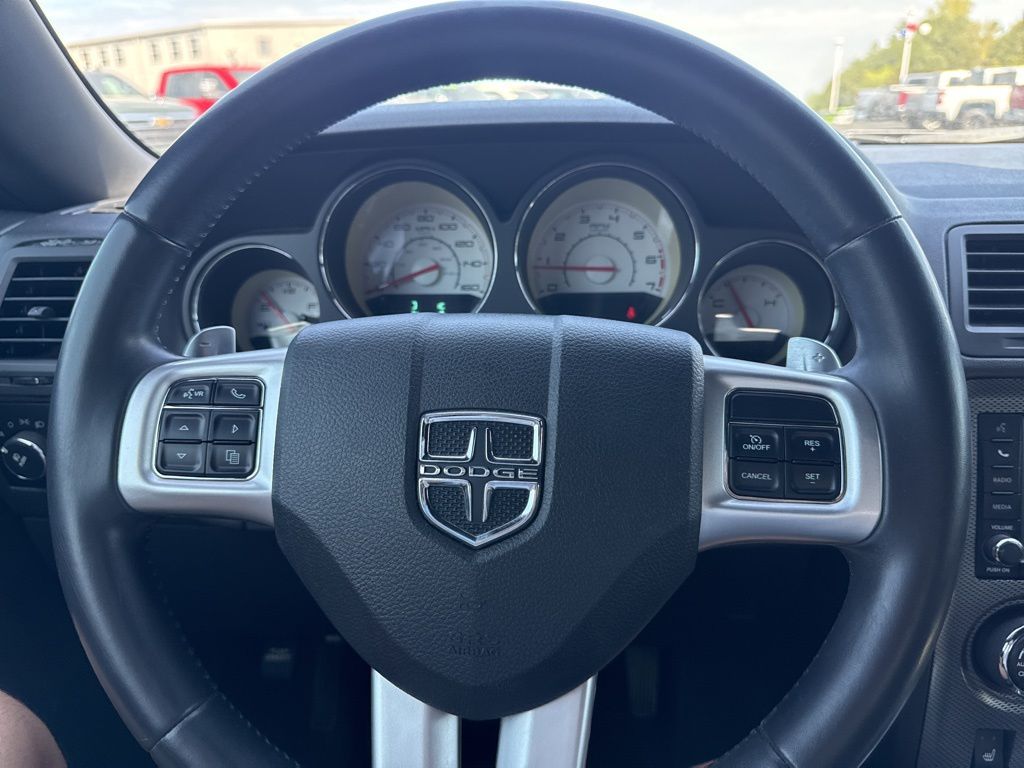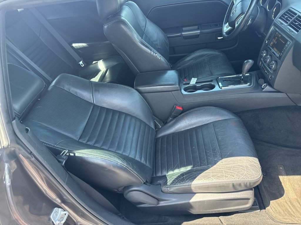 The state of the art park assist system will guide you easily into any spot. It offers Automatic Climate Control for personalized comfort. Start this model from inside with remote start. This vehicle features a hands-free Bluetooth phone system. The leather seats in the vehicle are a must for buyers looking for comfort, durability, and style. It is rear wheel drive. The vehicle has a V8, 5.7L high output engine. Maintaining a stable interior temperature in this vehicle is easy with the climate control system. With the keyless entry system on this unit you can pop the trunk without dropping your bags from the store. The Electronic Stability Control will keep you on your intended path. Help alleviate lower back pain with the driver seat lumbar support in this 2013 Dodge Challenger . The Dodge Challenger has fog lights for all weather conditions. Easily set your speed in it with a state of the art cruise control system. Increase or decrease velocity with the touch of a button.