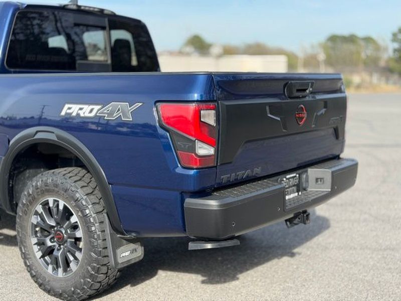 Discover this rugged 2024 Nissan Titan PRO-4X, now available in Jacksonville, AR. With a powerful 5.6L V8 gasoline engine and dependable 4WD, this truck delivers serious capability for towing, off-road adventures, and daily driving. Featuring just 21,380 miles, this Nissan Titan offers low mileage and long-term value for buyers seeking performance and reliability. This PRO-4X comes equipped with advanced convenience and safety tech, including Rear Parking Sensors for easier maneuvering, Lane Departure Warning to help prevent unintentional drift, and seamless smartphone integration via Android Auto. Enjoy premium entertainment with XM Radio and drive with confidence knowing this vehicle carries a CARFAX Clean Report. The bold exterior and rugged suspension are complemented by an interior designed for comfort and control—ideal for work sites or weekend getaways. Whether you need a capable tow vehicle or a comfortable family hauler, this Nissan Titan balances power, technology, and durability. Located in Jacksonville, AR, this 2024 Nissan Titan PRO-4X is priced to sell and represents the best price for its condition and features. Don't miss the opportunity to own a low-mileage, V8-powered truck with desirable safety and connectivity options. Contact us today to schedule a test drive and see why this Nissan Titan stands out among pre-owned trucks in the area.