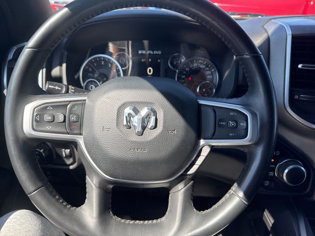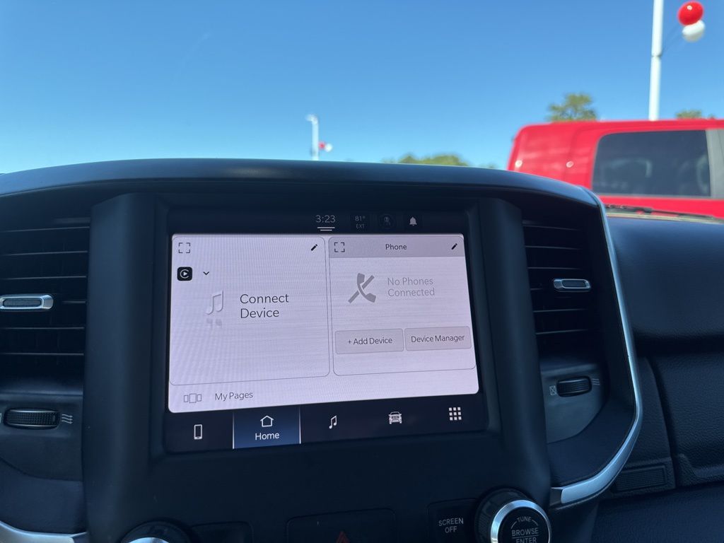 Quick Order Package 23Z Big Horn: Big Horn Badge. Big Horn Level 1 Equipment Group: Google Android Auto; SiriusXM Radio Service; Bluetooth Handsfree Phone and Audio; USB Host Flip; Rear Window Defroster; Rear View Auto Dim Mirror; For Details. Visit DriveUconnect.com; For More Info. Call 800-643-2112; Rear Power Sliding Window; Rear Dome with On/off Switch Lamp; Front Fog Lamps; Connectivity - US/Canada; Glove Box Lamp; 4G LTE Wi-Fi Hot Spot; Exterior Mirrors with Heating Element; Auto Dim Exterior Driver Mirror; Global Telematics Box Module; Heated Front Seats; Uconnect 5 W Radio with 8.4" Display; Heated Steering Wheel; Class IV Receiver Hitch; Black Premium Power Mirrors; Apple CarPlay; Big Horn Instrument Panel Badge; SiriusXM Satellite Radio; Exterior Mirrors with Supplemental Signals; Exterior Mirrors Courtesy Lamps; Passenger Sun Visor with Illuminated Mirror; Electric Shift on Demand Transfer Case; Power-Folding Mirrors; 2nd Row in Floor Storage Bins; Convex Wide-Angle Exterior Mirror Insert. Sport Appearance Package: 275/55R20 OWL All Season Tires; Deluxe Cloth Bucket Seats; Exterior Mirrors with Supplemental Signals; Body Color Premium Power Mirrors; Body Color Door Handles; Exterior Mirrors Courtesy Lamps; RAM Grille Badge - Chrome; Exterior Mirrors with Heating Element; Auto Dim Exterior Driver Mirror; Body Color Exterior Mirrors; Grille Surround 1 Body Color Texture 2 Black; Black Interior Accents; Power-Folding Mirrors; Body Color Front Bumper; Convex Wide-Angle Exterior Mirror Insert; Body Color Rear Bumper with Step Pads. 20" X 9" Aluminum Chrome Clad Wheels. Deluxe Cloth Bucket Seats. Anti-Spin Differential Rear Axle. Trailer Brake Control. Remote Start System. MOPAR Front and Rear Rubber Floor Mats. 3.55 Rear Axle Ratio. **Equipment listed is based on original vehicle build and subject to change. Please confirm the accuracy of the included equipment by calling the dealer prior to purchase.**