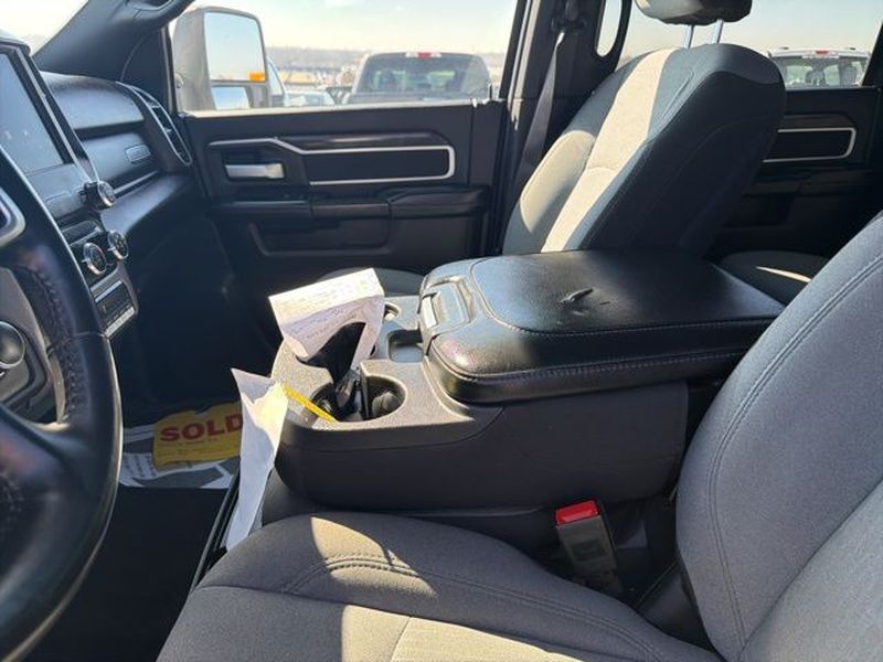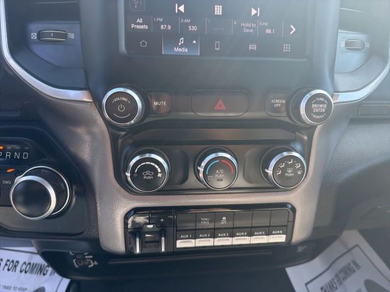 Quick Order Package 2GZ Big Horn. Level 1 Equipment Group: Google Android Auto; SiriusXM Radio Service; Bluetooth Handsfree Phone and Audio; Integrated Center Stack Radio; For Details. Visit DriveUconnect.com; For More Info. Call 800-643-2112; Leather Wrapped Steering Wheel; Rear Dome with On/off Switch Lamp; Front Fog Lamps; Integrated Voice Command with Bluetooth; Connectivity - US/Canada; Premium Cloth 40/20/40 Bench Seat; Glove Box Lamp; Auto Power-Folding Mirrors; Footwell Courtesy Lamp; 4G LTE Wi-Fi Hot Spot; GPS Antenna Input; Exterior Mirrors with Heating Element; Global Telematics Box Module; Mirror Running Lights; Uconnect 5 W Radio with 8.4" Display; 8.4" Touchscreen Display; Foam Bottle Insert (door Trim Panel); Black Exterior Mirrors; 18" X 8.0" Polished Aluminum Wheels; Apple CarPlay; Big Horn Instrument Panel Badge; Power Adjustable Convex Aux Mirrors; Forward and Reverse Utility Lights; Locking Lower Glove Box; Selectable Tire Fill Alert; SiriusXM Satellite Radio; Power Heated Fold Telescope Mirrors; Exterior Mirrors with Supplemental Signals; Steering Wheel Mounted Audio Controls; Exterior Mirrors Courtesy Lamps; Dual Glove Boxes; Center Hub; Power Adjust Mirrors; 2nd Row in Floor Storage Bins; Power Telescoping Mirrors. Protection Group: Tow Hooks; Transfer Case Skid Plate Shield. Premium Cloth 40/20/40 Bench Seat. Chrome Flat Wheel-To-wheel Side Steps. MOPAR Spray in Bedliner. 2 Additional Key Fobs. 115-Volt Auxiliary Front Power Outlet. Front Fog Lamps. Rear Window Defroster. MOPAR Front and Rear Rubber Floor Mats. Instrument Panel Mounted Auxiliary Switches. Rear Backup Alarm. Tow Hooks. **Equipment listed is based on original vehicle build and subject to change. Please confirm the accuracy of the included equipment by calling the dealer prior to purchase.**