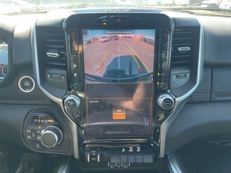 Quick Order Package 23Z Big Horn: Big Horn Badge. Big Horn Level 2 Equipment Group: Google Android Auto; USB Host Flip; Power Adjustable Pedals; Leather Wrapped Steering Wheel; Integrated Voice Command with Bluetooth; 12" Touchscreen Display; Glove Box Lamp; Auto Power-Folding Mirrors; 115V Auxiliary Rear Power Outlet; Media Hub with 2 Charge Only USBs; Heated Front Seats; Security Alarm; Black Premium Power Mirrors; Apple CarPlay; Premium Overhead Console; 9 Amplified Speakers with Subwoofer; Wireless Charging Pad; Remote Tailgate Release; 115V Auxiliary Power Outlet; LED Dome Lamp with On/off Switch; Universal Garage Door Opener; 2nd Row in Floor Storage Bins; Sun Visors with Illuminated Vanity Mirrors; LED Footwell Lighting; Power 2-Way Driver Lumbar Adjust; Rear Window Defroster; Rear View Auto Dim Mirror; Rear Power Sliding Window; Connectivity - US/Canada; GPS Navigation; 4G LTE Wi-Fi Hot Spot; GPS Antenna Input; Overhead LED Lamps; Exterior Mirrors with Heating Element; Auto Dim Exterior Driver Mirror; SiriusXM with 360L; Connected Travel and Traffic Services; Heated Steering Wheel; Black Exterior Mirrors; Configurable Drive Mode; 400W Inverter; HD Radio; Uconnect 5 Navigation with 12.0" Display Radio; Exterior Mirrors with Supplemental Signals; Steering Wheel Mounted Audio Controls; Exterior Mirrors Courtesy Lamps; Air Conditioning ATC with Dual Zone Control; Cluster 7.0" TFT Color Display; Power Adjust 8-Way Driver Seat; Convex Wide-Angle Exterior Mirror Insert. Night Edition: 275/55R20 OWL All Season Tires; Deluxe Cloth Bucket Seats; Accent Color Premium Power Mirrors; Exterior Mirrors with Supplemental Signals; Black Headlamp Bezels; Exterior Mirrors Courtesy Lamps; Grille Black Surround Black Mesh; Auto Power-Folding Mirrors; Exterior Mirrors with Heating Element; 20" X 9.0" Aluminum Painted Clad Wheels; Auto Dim Exterior Driver Mirror; Black Exterior Truck Badging; Anti-Spin Differential Rear Axle; Accent Color Door Handles; Accent Color Tailgate Handle; Black Interior Accents; Body Color Front Bumper; Convex Wide-Angle Exterior Mirror Insert; Body Color Rear Bumper with Step Pads; Black Tail Lamp Bezels; RAM Grille Badge - Black; Black Painted Exterior Mirrors Caps. 9 Amplified Speakers with Subwoofer. Deluxe Cloth Bucket Seats. Anti-Spin Differential Rear Axle. 33 Gallon Fuel Tank. Trailer Brake Control. Billet Silver Metallic CC. MOPAR Front and Rear Rubber Floor Mats. **Equipment listed is based on original vehicle build and subject to change. Please confirm the accuracy of the included equipment by calling the dealer prior to purchase.**